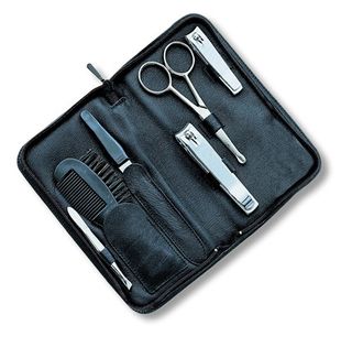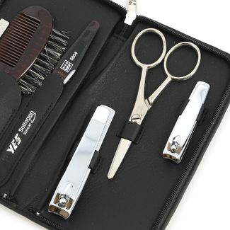Мужской дорожный набор Yes, 6 предметов. Инструменты: ножницы для стрижки усов, книпсер малый, книпсер большой, пилка металлическая, пинцет прямой, расческа-щетка. Футляр: натуральная кожа, цвет черный. Размер 16 x 1 x 9 см None Возможен самовывоз.