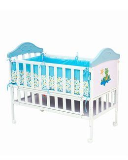 Бело-голубая кроватка BabyHit Sleepy для малышей от рождения и до 4 лет. Сделана из металла. Торцевой бортик откидывается, длина спального места увеличивается. В комплекте - защитные бортики и балдахин. Скидка 2% на этот товар Возможен самовывоз. Есть доставка.