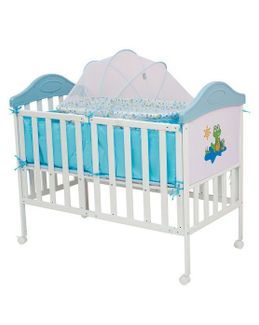 Бело-голубая кроватка BabyHit Sleepy Compact складывается гармошкой. В комплекте - балдахин, бортики, люлька для новорожденного. Наличные, Visa/MasterCard, Яндекс.Деньги, WebMoney Возможен самовывоз. Есть доставка.