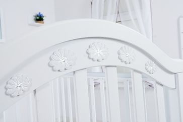 Кроватка Джузеппе от российской фабрики Гандылян сделана из массива бука. Устойчивость конструкции придают четыре ножки, к которым можно присоединить колесики. Украшением является аппликация, декорированная кристаллами Сваровски. Наличные, Visa/MasterCard, Яндекс.Деньги, WebMoney Возможен самовывоз. Есть доставка.