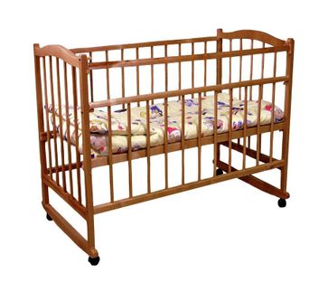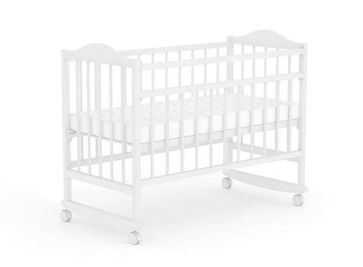 Изящная детская кроватка из массива березы Фея 204. Благодаря прочному и экологичному материалу изготовления модель прослужит вам долго. Детали обработаны защитным не токсичным лаком. Кроватка подходит детям до пяти лет.<br> Преимущества: <br> натуральные материалы — модель полностью выполнена из березового массива;<br> практичные колесики — помогут немного покачивать ребенка, а также облегчают перемещение изделия;<br> регулируемая высота — кроватка имеет два варианта высота ложа.<br><br> Размер спального места составляет 600 х 1200 мм.<br> При необходимости колеса можно снять и модель преобразуется в кроватку-качалку. Ограничительная планка опускается с помощью механизма «ушко».<br> Обратите внимание! Матрас не входит в комплектацию изделия. None Страна производства: Россия