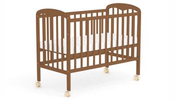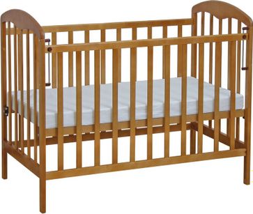 Модель подходит для детей до 5 лет. Кроватка выполнена из экологически чистых материалов и покрыта безопасным лаком. Боковая стенка опускается с помощью механизма «Кнопка». Поперечная перекладина является съемным элементом.<br>