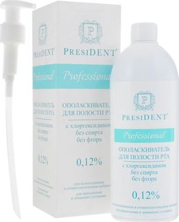 - PRESIDENT. Ополаскиватель для полости рта "Professional" с хлоргексидином 0,12%, 500 мл по выгодной цене 480 р. руб.;