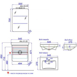 - Aqwella Мебель для ванной Аликанте 55 с зеркальным шкафом в каталоге Мебель для ванных комнат в России;