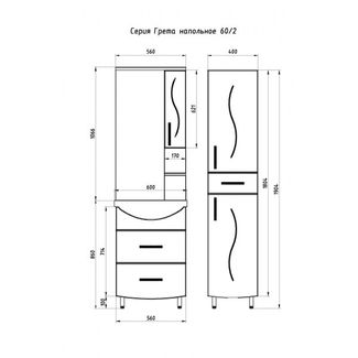 - ASB-Mebel Мебель для ванной Грета 60-2 напольная в каталоге Мебель для ванных комнат в России;