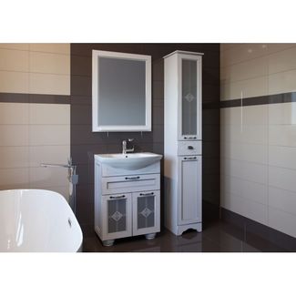 - ASB-Woodline Мебель для ванной Бергамо 65 витраж, белая, массив ясеня в каталоге Мебель для ванных комнат в России;