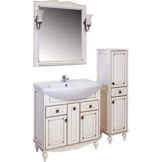 - ASB-Woodline Мебель для ванной Верона 75 бежевая патина золото, массив ясеня в каталоге Мебель для ванных комнат в России;