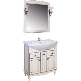 ASB-Woodline Мебель для ванной Верона 75 бежевая патина золото, массив ясеня