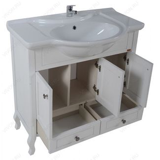 Закажите ASB-Woodline Тумба с раковиной Флоренция 85 белая патина, серебро, массив ясеня у компании Superbath.ru в России на портале Alloy:
