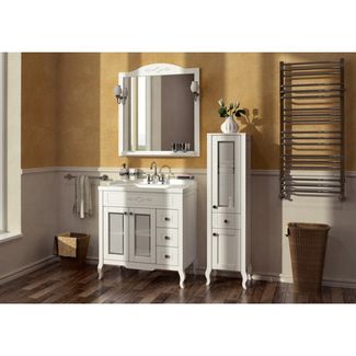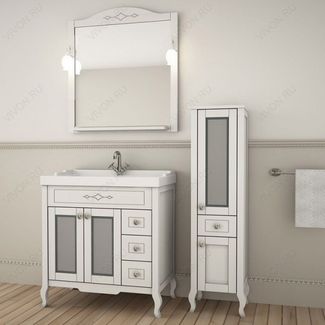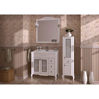 - ASB-Woodline Тумба с раковиной Флоренция Квадро 80 белая патина, серебро, витраж, массив ясеня в каталоге Мебель для ванных комнат в России;