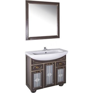 Закажите ASB-Woodline Зеркало для ванной Бергамо 85 орех патина золото, массив ясеня у компании Superbath.ru в России на портале Alloy:
