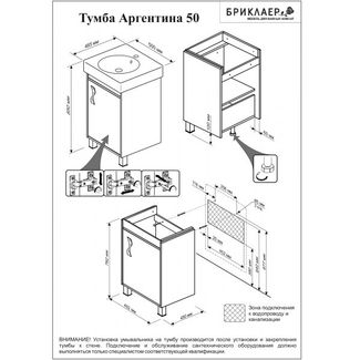 - Бриклаер Мебель для ванной Аргентина 50 белая в каталоге Мебель для ванных комнат в России;