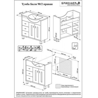 - Бриклаер Тумба с раковиной Бали 90 R светлая лиственница в каталоге Мебель для ванных комнат в России;
