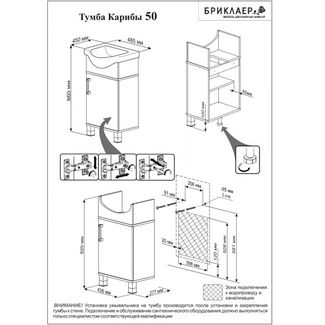 - Бриклаер Тумба с раковиной Карибы 50 светлая лиственница в каталоге Мебель для ванных комнат в России;