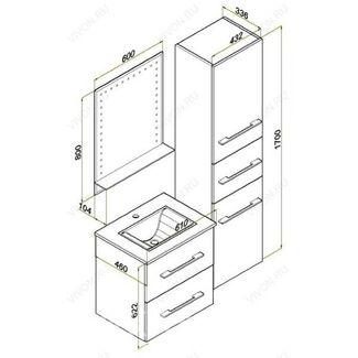 - Бриклаер Тумба с раковиной Сиэтл 60 белое серебро в каталоге Мебель для ванных комнат в России;