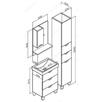 - Бриклаер Зеркальный шкаф Токио 60 L венге в каталоге Мебель для ванных комнат в России;