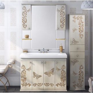 - Misty Тумба с раковиной Бабочка 120 бежевая патина в каталоге Мебель для ванных комнат в России;