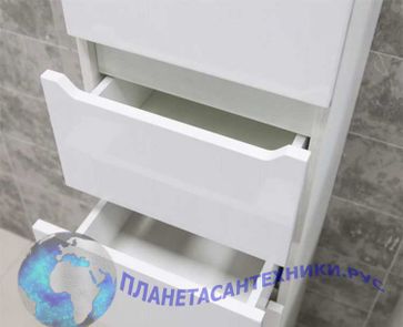 Особенности шкафа колонны Акватон - ДАКОТА белый 1A203203DAAY0. Дизайн коллекции не предусматривает лицевую фурнитуру – вместо нее на фасадах сделаны удобные вырезы, которые позволяют без труда открыть ящики. Боковые стенки выполнены из текстурированного ДСП в цвете «выбеленное дерево». Фасады окрашены в белый глянец, который достигается за счет 5-тислойной покраски на закрытой линии УФ-отверждения. None