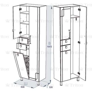 - Пенал TRITON Диана 60 2 ящика, 2двери левый корзина в каталоге Мебель для ванных комнат в России;