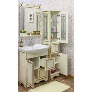 - Sanflor Тумба с раковиной Адель 65 белая, патина золото в каталоге Мебель для ванных комнат в России;