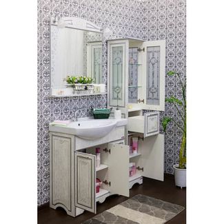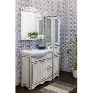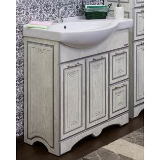 - Sanflor Тумба с раковиной Адель 82 R белая, патина серебро в каталоге Мебель для ванных комнат в России;