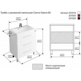 - СанТа Мебель для ванной Омега 65 L напольная черная по выгодной цене 18 952 р. руб.;