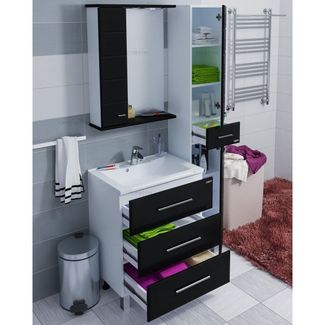 - СанТа Мебель для ванной Омега 65 L напольная черная в каталоге Мебель для ванных комнат в России;