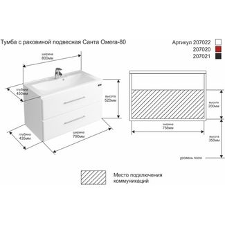 - СанТа Мебель для ванной Омега 80 подвесная черная в каталоге Мебель для ванных комнат в России;