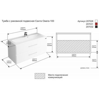 - СанТа Тумба с раковиной Омега 100 подвесная в каталоге Мебель для ванных комнат в России;