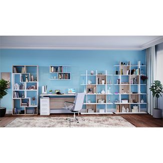 Набор мебели Сокол № 1. Цвет - дуб сонома/белый. Комплектация набора - СПК-94 + КСТ-105-1 + СПК-2 + СТ-5 + СТ-6. Набор мебели, состоящий из письменного стола, навесной полочки и нескольких открытых стеллажей составит основу рабочего места современного подростка. None Есть доставка.