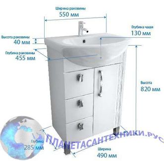- Triton Тумба с раковиной Кристи 55 с ящиками справа в каталоге Мебель для ванных комнат в России;