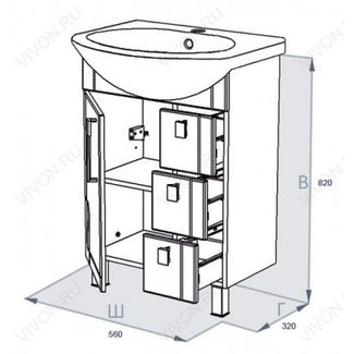 - Triton Тумба с раковиной Кристи 60 R с ящиками в каталоге Мебель для ванных комнат в России;