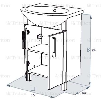 Тумба напольная под раковину TRITON Диана 50 умывальник Ладога 50