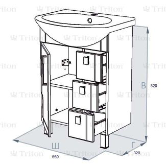 - Тумба напольная под раковину TRITON Диана 60, 3ящика справа умывальник Балтика 60 по выгодной цене 7 000 р. руб.;