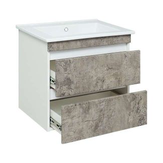 Коллекция мебели "Манхэттен" выполнена в современном стиле. Корпус изделий изготовлен из белого ЛДСП, а фасады облицованы матовой пленкой ПВХ цвета "серый бетон". Тумба под умывальник подвесная с двумя выдвижными ящиками на шариковых направляющих с доводчиком. Навесы - 2шт. None Есть доставка.