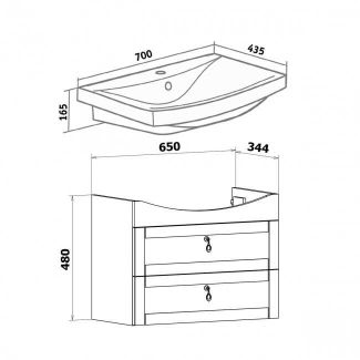 Тумба Руно Runo МЕРИДА 70 подвесная под умывальник Carina 70
