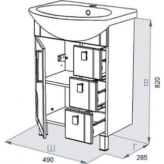 Тумба с раковиной Triton Диана 55 напольная, 3 ящика
