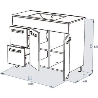 - Тумба с раковиной Triton Ника 100 напольная, дверца, 4 ящика по выгодной цене 21 370 р. руб.;