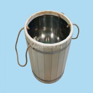 Деревянный запарник с нержавеющей вставкой предназначен для запаривания веников перед приемом парных процедур или для переноса и хранения горячей или холодной воды, которая может понадобиться и пригодиться в банных условиях.