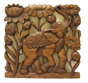 - ОЛИМАР Панно Слон в цветах 46х h46 х 4см Тик в каталоге Мебель из дерева, массива в России;
