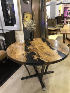 ОЛИМАР Стол обеденный круглый из слэба со смолой карагач