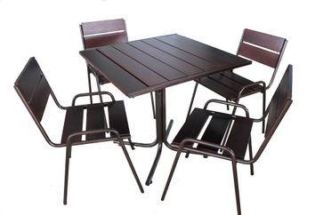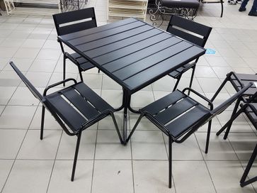Комплект мебели для сада или зоны фудкорта или офисного помещения изготовленные из метала и пластика под дерево это долговечное решение и красивый атрибут вашего заведения.