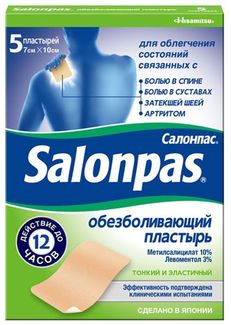 - Пластырь Salonpas обезболивающий 7х10 см, 5 шт. по выгодной цене 365 р. руб.;
