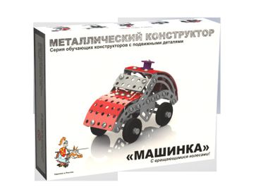 Металлический конструктор "Машинка" имеет в своем составе 132 детали и удобный гаечный ключ. None
