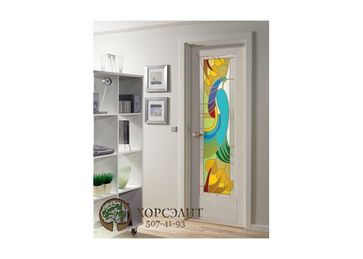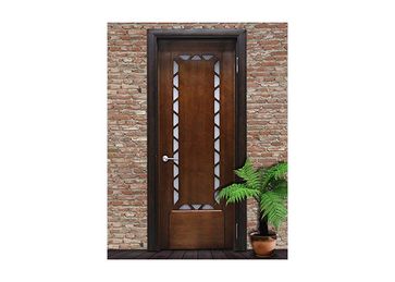 "Это изделие отличает оригинальная конструкция, необычный внешний вид и неизменно высокое качество изготовления. Различные варианты конструкции двери придутся по вкусу любителям неординарных вещей. В комплект входит дверное полотно (глухое или остекленное белым матовым стеклом), коробка 75 мм, наличник стандартный с двух сторон. "