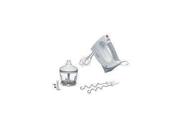 Мощность: 450 Вт5 скоростей + импульсный режим2 крюка для теста и 2 венчика из нержавеющей сталиУниверсальный измельчитель со съемным ножом из нержавеющей сталиНож для колки льдаКнопка-замок для отделения венчиков и крюковМягкие вставки на ручке и корпусе None