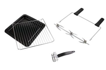 Электрическая мини печь Rommelsbacher BG 1805/E Корпус из нержавеющей стали Объём камеры 42 литра, мощность (верхний + нижний ТЭН) 1800 Вт Верхний и нижний ТЭН, включаются по одному или совместно, конвекция, моторизованный вертел Антипригарное внутреннее покрытие Таймер на 120 минут (возможно постоянное включение), сигнал окончания готовки, внутреннее освещение Селектор температуры (80° - 230° C) для различных режимов работы Противень с эмалированным покрытием, сетка гриля, вертел, поддон для крошек Дверца с двойным термостойким стеклом и герметичным уплотнителем None Страна производства: Китай Возможен самовывоз. Есть доставка.