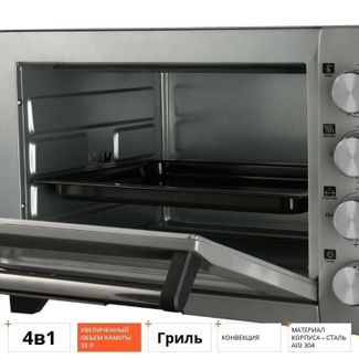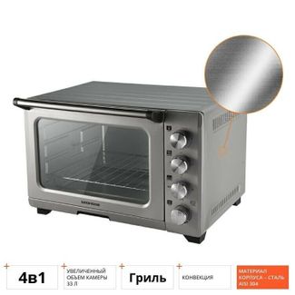 Мини-печь Redmond RO-5701 – это многофункциональное устройство для приготовления домашней выпечки и жареных блюд. Большой объем (33 л) рабочей камеры позволяет запекать или жарить целиком птицу, рыбу и крупные овощи. Цвет серебро. Тип управления механический. Мощность 800 - 1600 Вт. Объем камеры 33 л. Количество режимов работы 3. Гриль да. Конвекция да. Габаритные размеры 550х290х323 мм. None Возможен самовывоз.