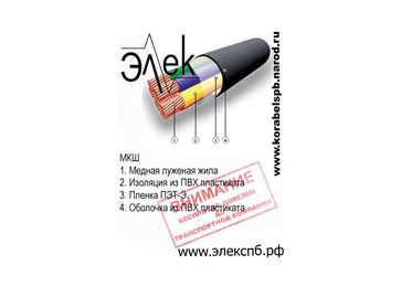 - МКШ — кабель с жилой из медных луженых проволок с изоляцией и оболочкой из ПВХ пластиката.