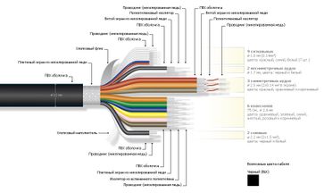 6 коаксиалов 75 Ом, 3 симм аудио, 2 не симметр аудио, 9 сигнальных, 2 силовых (2 х 1,5мм); внешн диаметр = 12мм2. None